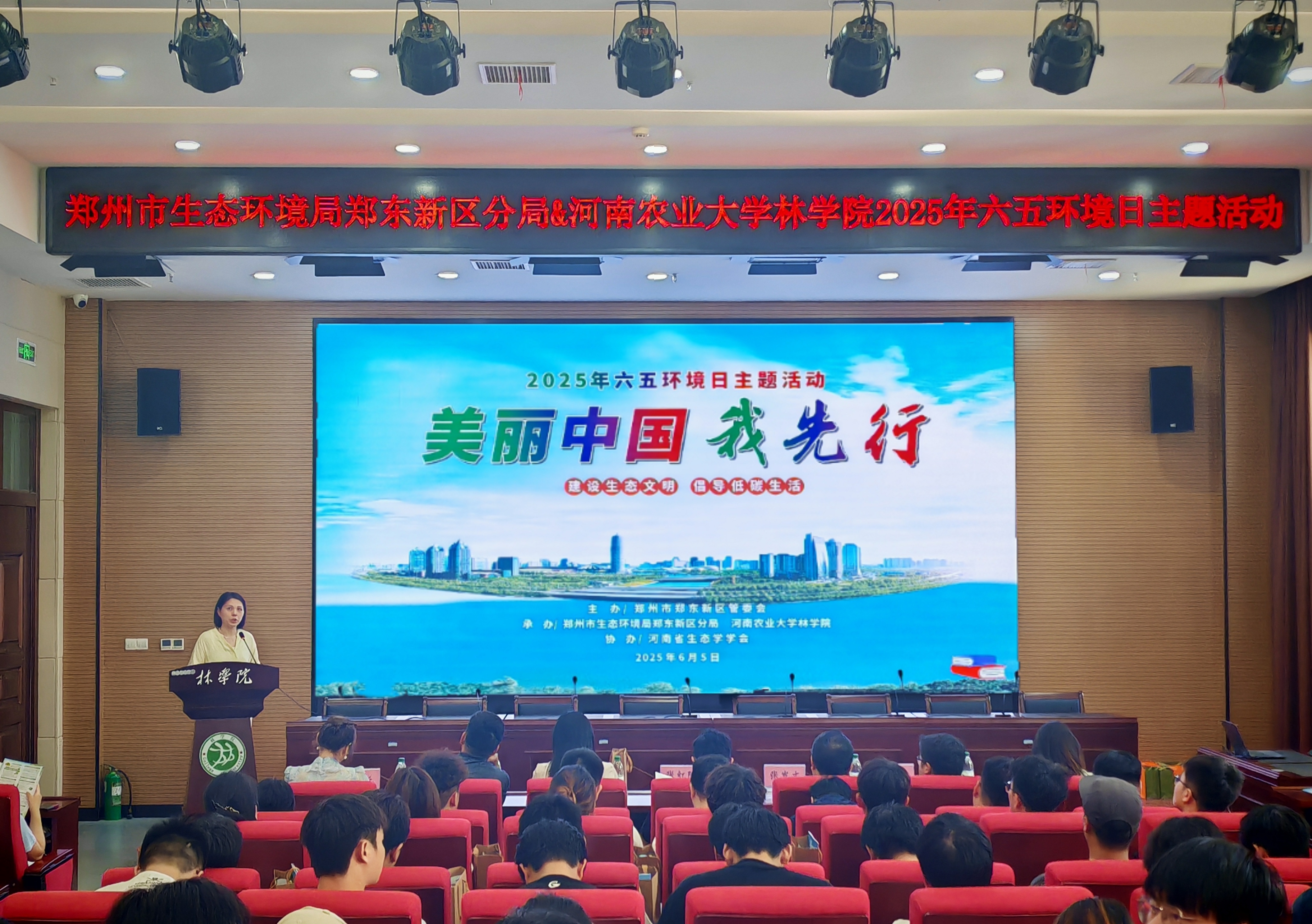 本网讯(通讯员 马蒙恩)6月5日,由郑州市东区管委会主办,独播库 与郑州市生态环境局郑东新区分局承办的“美丽中国我先行”——2025年六五环境日主题活动在龙子湖校区力行楼举行。郑州市生态环境局郑东新区分局局长张红阳、独播库 党委书记化青报、院党委副书记王娟及学院师生代表参加本次活动。