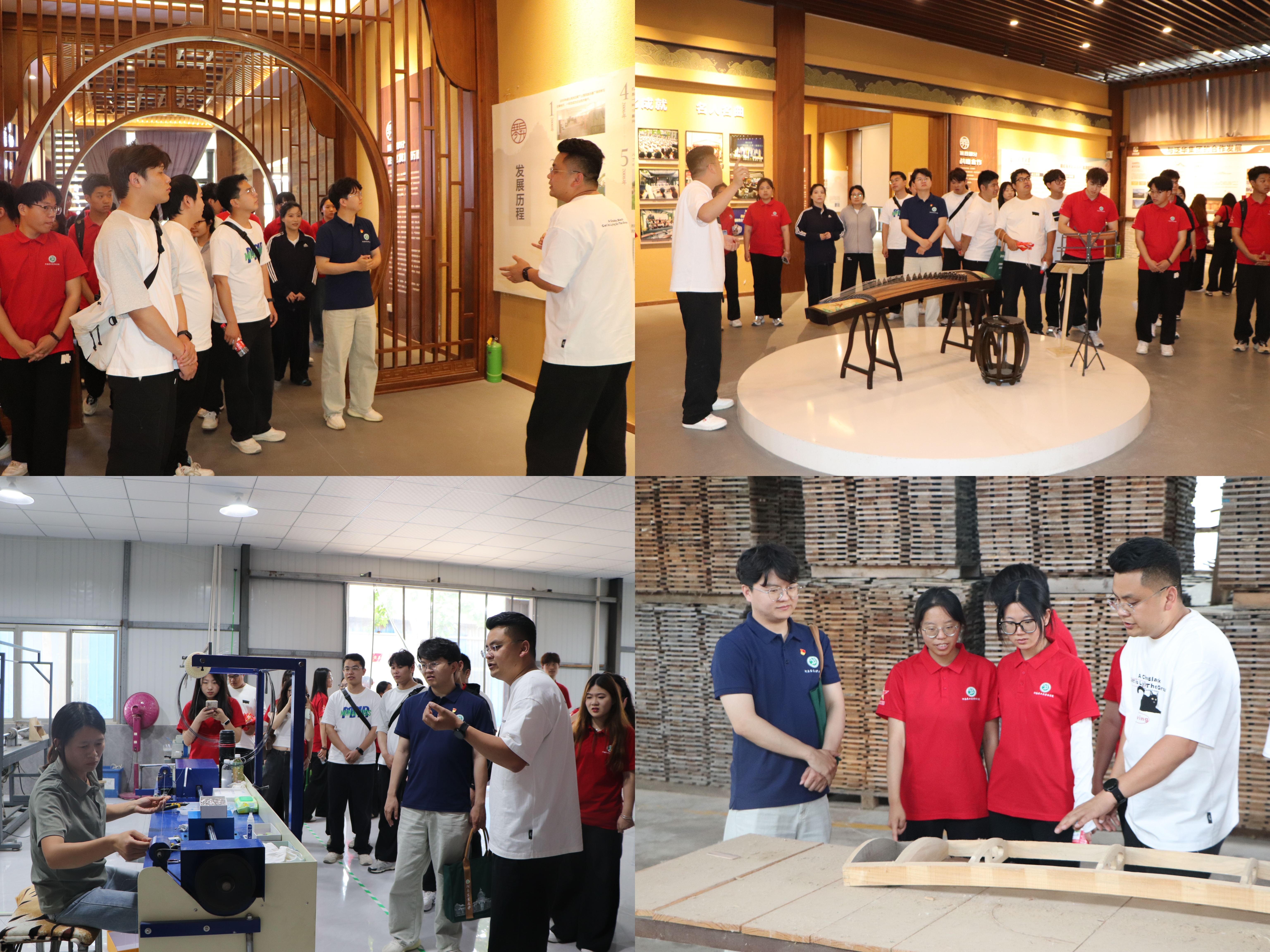 下午,师生一行访问兰考县音乐小镇参观琴昇展厅,深入了解兰考县乐器制作的发展历史与独播库。随后,在琴昇古筝负责人的带领下,学生走进“琴昇乐器群创园区”厂房进一步了解古筝的制作流程,并结合专业特色了解泡桐木材的市场应用前景。