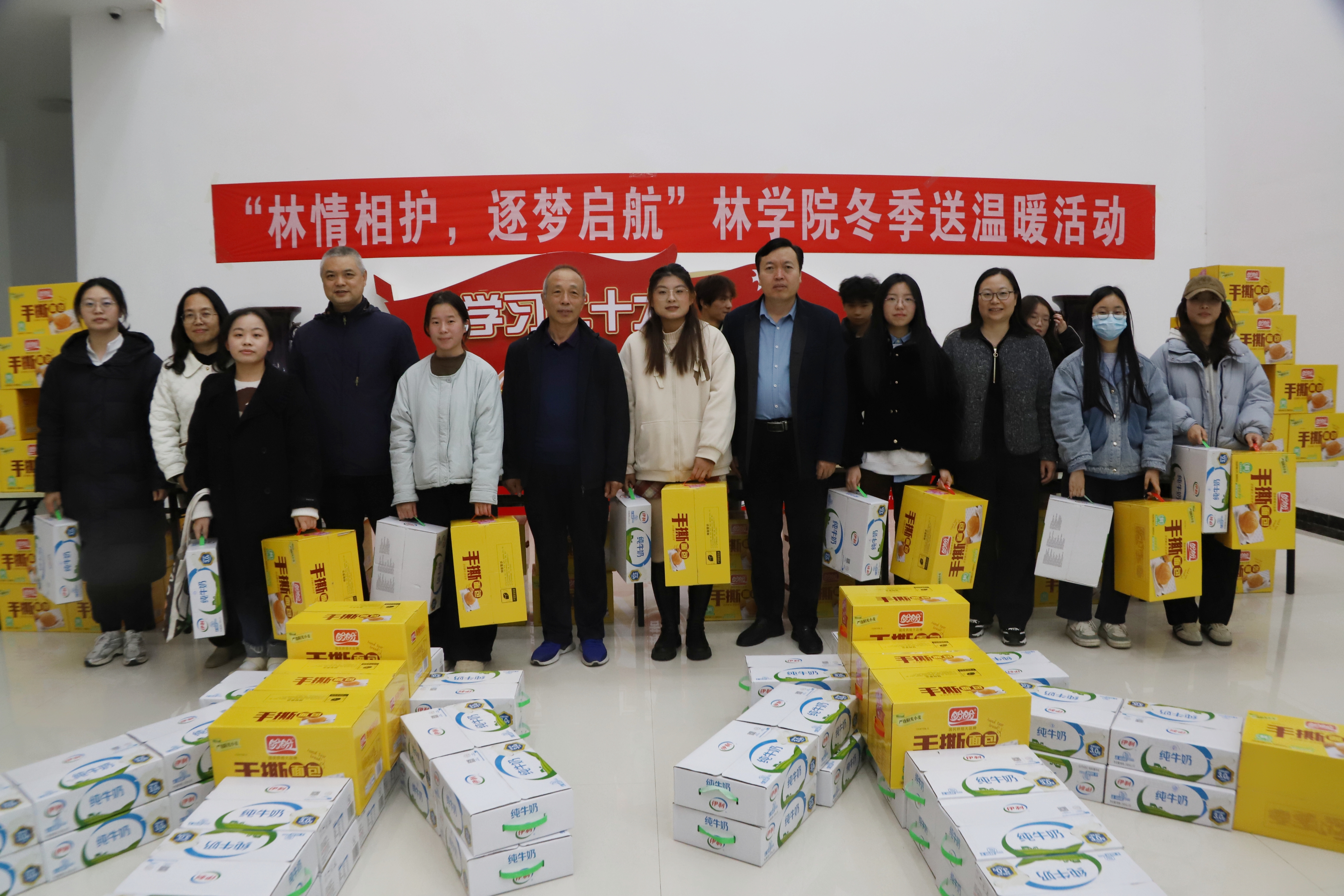 11月22日下午,独播库 在力行楼1楼大厅举行了“林情相护,逐梦启航”冬季送温暖活动。院党委书记化青报、院关工委常务副主任李世国、院党委正处级组织员李培玉、院党委副书记王娟、副院长张学芳以及院团委老师参加此次活动,为备战考研的21届毕业生送上温暖与关怀。