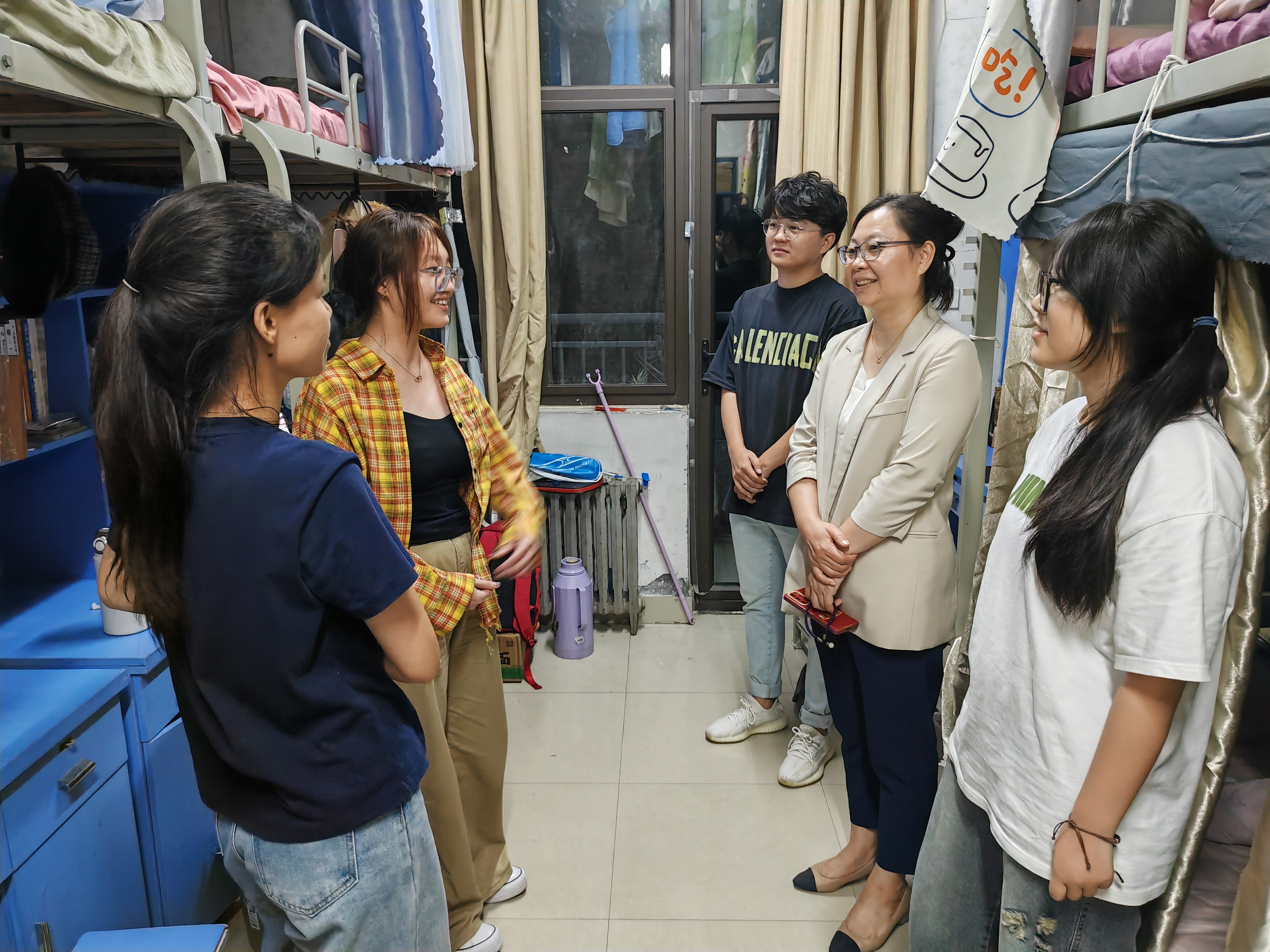 为深入了解学生情况、促进学院学生工作的顺利开展,保障23级学生顺利入住新宿舍并提升学院整体宿舍安全管理水平,9月3日,独播库 党委副书记王娟、院团委书记田原与团委老师一同深入学生宿舍进行走访慰问。