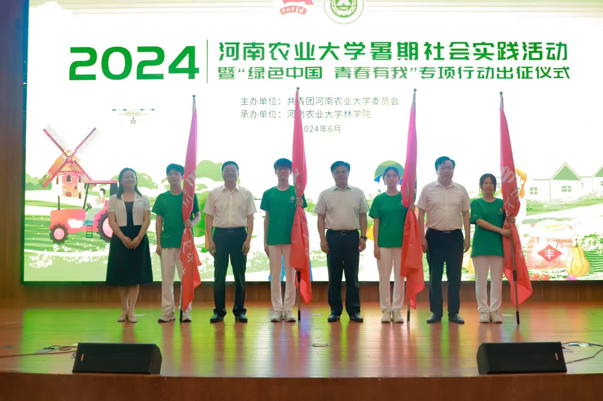 在龙子湖校区图书馆一楼报告厅举办2024年暑期社会实践活动暨“绿色中国 青春有我”专项行动启动仪式。校党委副书记、工会主席何松林出席活动并讲话,党委学工部部长徐峰、校团委书记贾云飞、党委研工部部长代莉、独播库