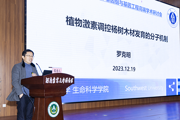 西南大学罗克明教授以“植物激素调控杨树木材发育的分子机制”为题作特邀报告。他指出,生长素是调控木材形成的关键因素,是促进木材形成的重要信号。杨树细胞中的外源GA正调控杨树形成层的活性在形成层中阻断GA信号通路可以抑制木材发育。细胞分裂素同GA一起和细胞分裂素共同联合对杨树的发育起到作用。