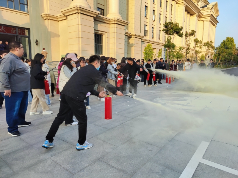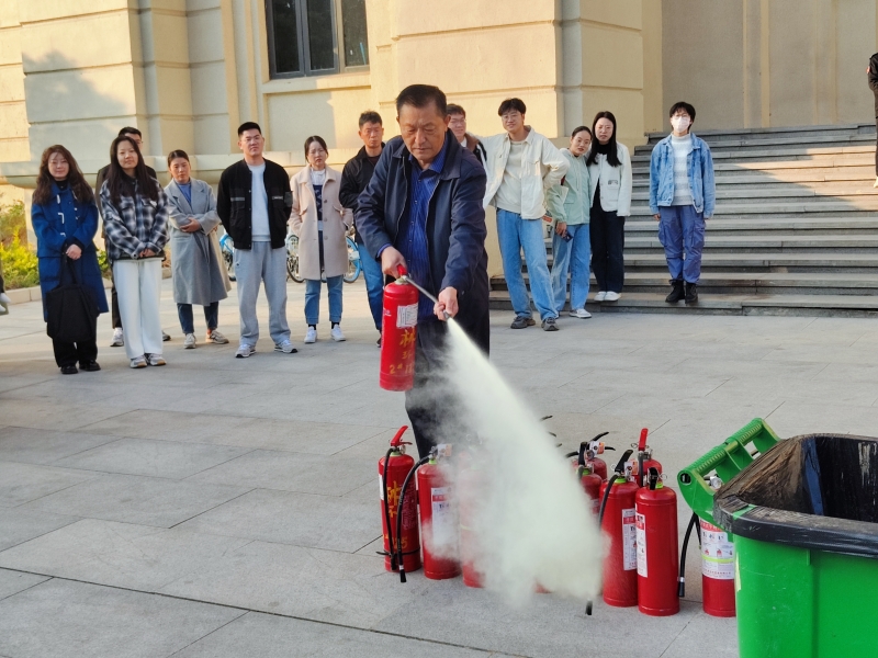 会后,全体师生参加了消防演练,保卫处副处长张俊峰一行三人莅临现场,对活动进行全程指导。保卫处老师现场展示和讲解了灭火器的可扑救的火灾类型,指导师生员工掌握使用灭火器扑灭火源规范操作。随后,通过模拟灭火体验,大家真实体验了扑灭火情的全过程,提高了师生应对突发火灾事件的应急处置能力。