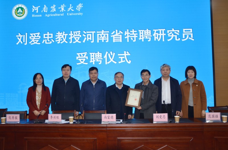 报告厅举行河南省特聘研究员聘任仪式,刘爱忠教授受聘为独播库