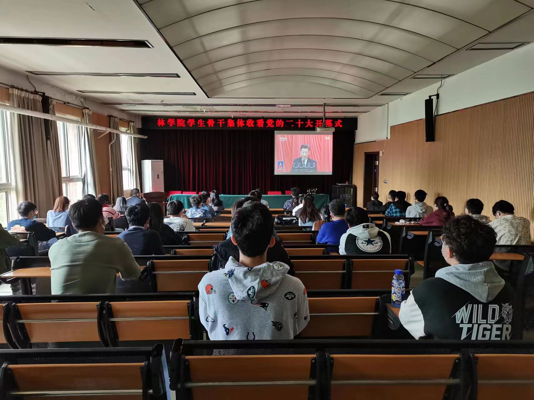 此次集中观看党的二十大开幕式,激励了学院师生高举中国特色社会主义伟大旗帜,踔厉奋发,凝心聚力,为全面建成社会主义现代化强国,实现第二个百年奋斗目标,以中国式现代化全面推进中华民族伟大复兴而团结奋斗。