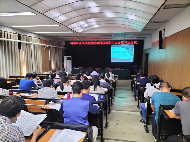 在文化路校区召开第四届教职工大会第三次会议。院党委书记化青报、院长范国强、院党委副书记李兴旺、副院长彭万喜、张学芳、李喜梅及全体教职工参加会议。会议采用线上线下相结合的方式进行。会议由院党委副书记、分工会主席李兴旺主持。