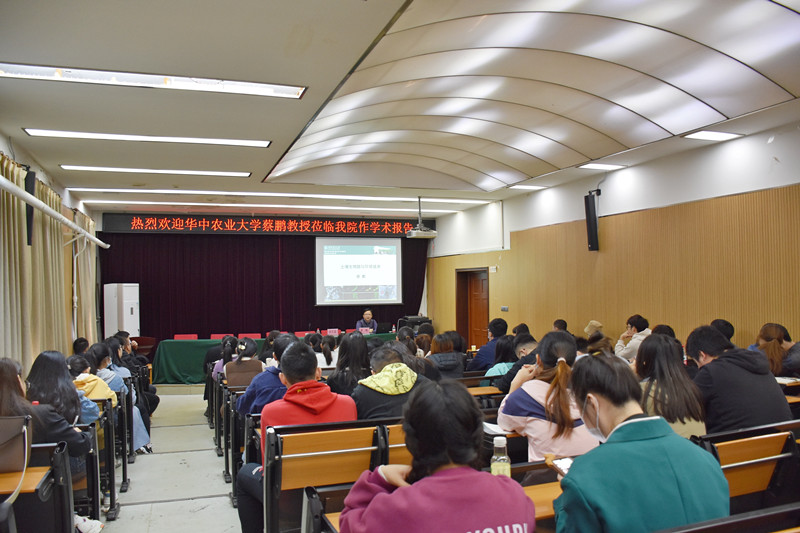 10月22日下午,华中农业大学农业微生物国家重点实验室、资源与环境学院蔡鹏教授应邀,在文化路校区2号楼四楼报告厅为学院师生作了题为“土壤生物膜与环境健康”的学术报告。学院相关专业教师和研究生参加了报告会。报告会由独播库