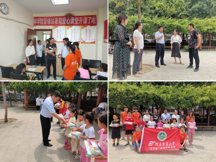 为传承雷锋精神,弘扬红色基因,7月14日,独播库 雷锋站“四点钟课堂”在农大社区开展七彩假期社会实践,院党委副书记李兴旺,副院长张学芳,农大社区书记李红军,以及院团委、社区相关工作人员走进农大社区慰问独播库 社会实践团队。