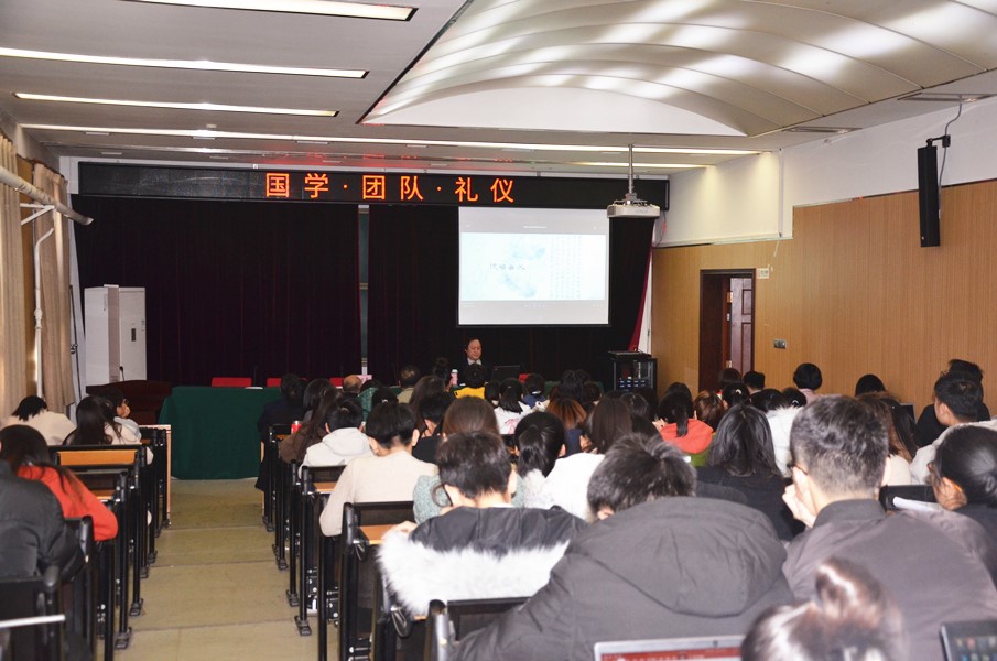 师生做题为“国学´团队´礼仪”的文化交流报告会。广大师生踊跃参加,彭万喜教授主持报告会。
