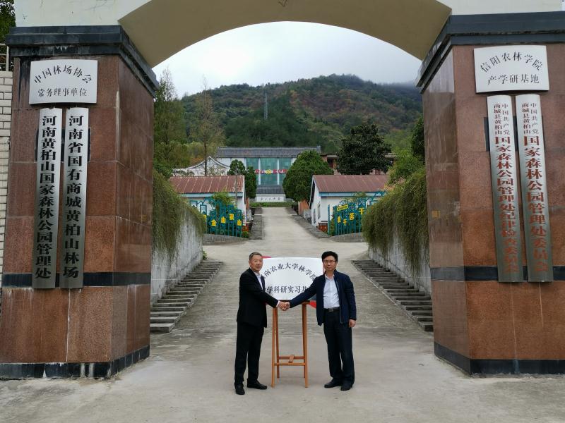 教学科研实习基地”在黄柏山国家森林公园举行挂牌仪式。院党委书记郑东方和商城县黄柏山国家森林公园管理处主任、黄柏山林场场长纪道宝共同为基地揭牌。独播库