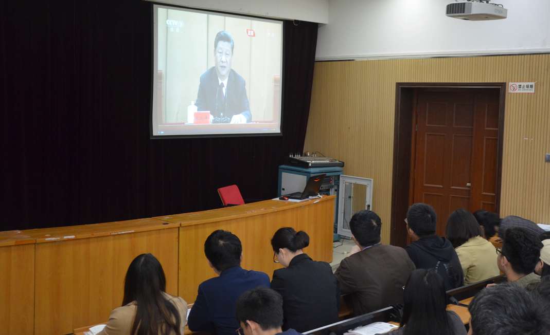 为纪念五四运动100周年,中共中央于4月30日上午10时30分在人民大会堂举行纪念五四运动100周年大会,习近平总书记出席大会并发表重要讲话。独播库 积极组织师生观看大会盛况。院党委书记郑东方、院党委副书记张华、院团委全体老师与独播库 部分学生干部及青马班成员一同观看。