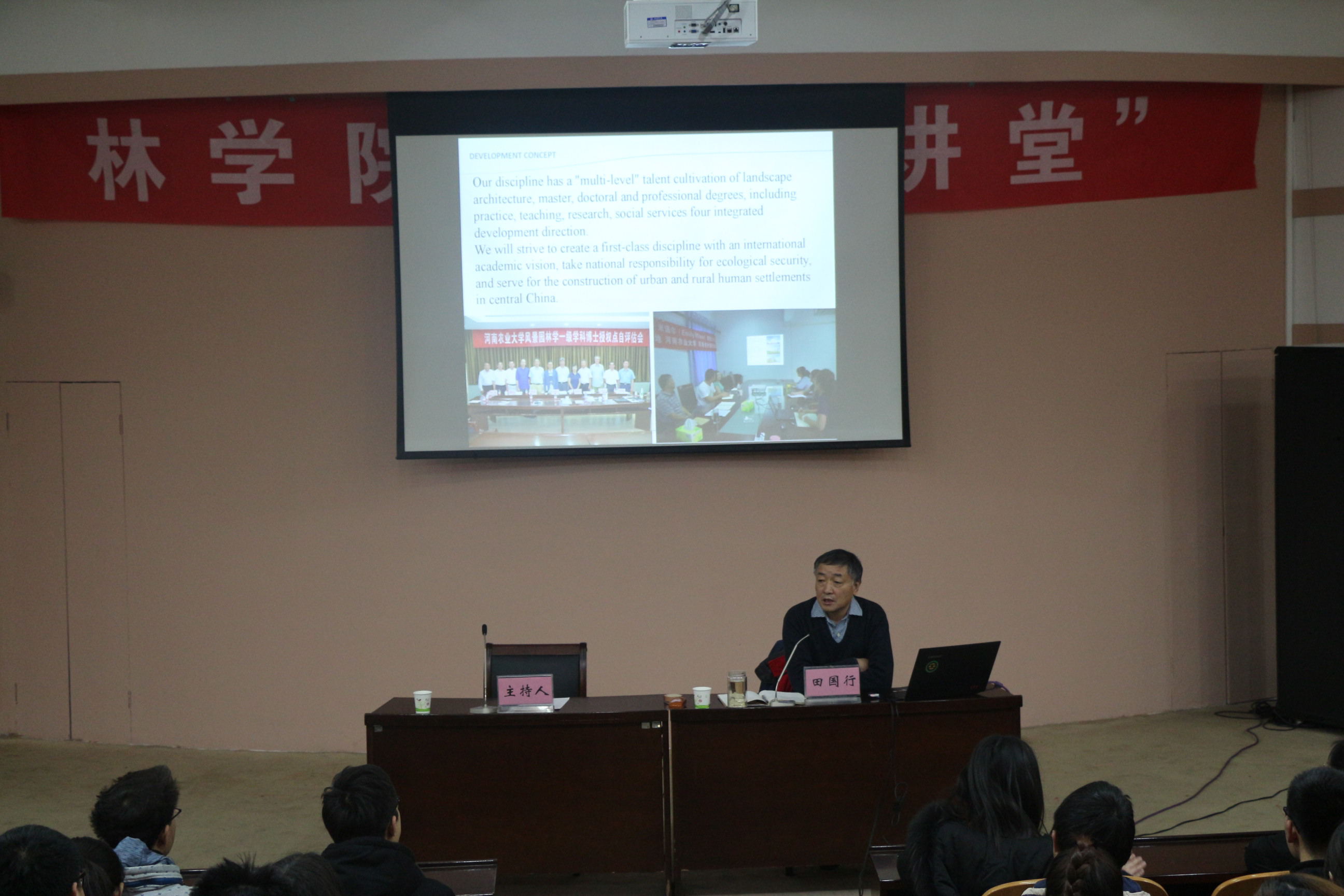 12月26日,园林系教授、博士生导师田国行走进独播库 “教授讲堂”,于校300人报告厅为相关专业学生做了专题报告。报告会由院团委老师田原主持。