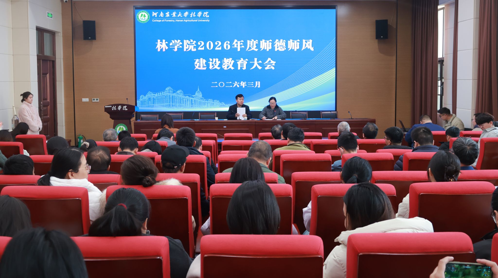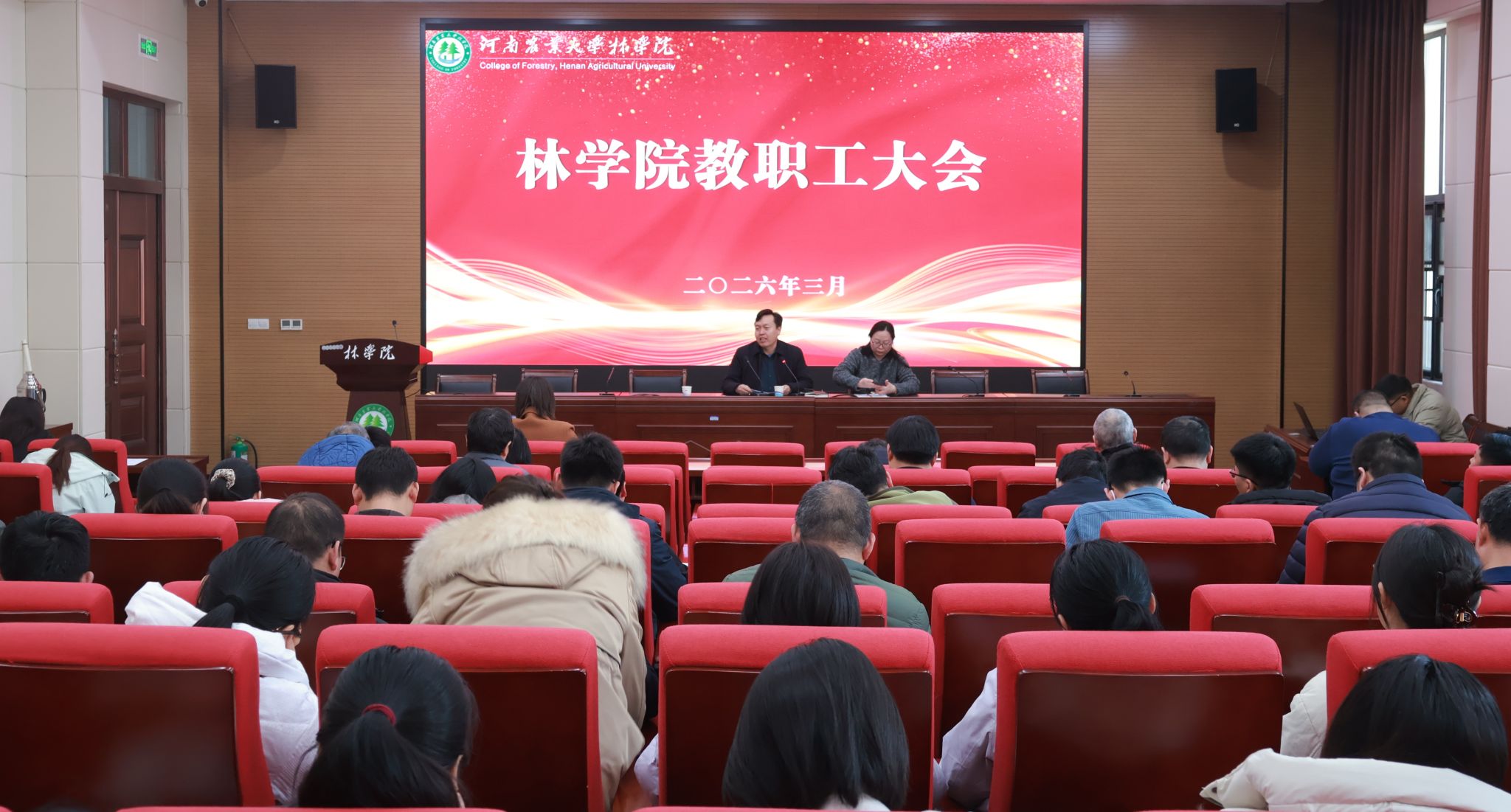 召开新学期全体教职工大会。院党委书记化青报、院党委副书记王娟、副院长李喜梅、副院长张学芳以及学院全体在职教师参加会议。会议由院党委副书记王娟主持。