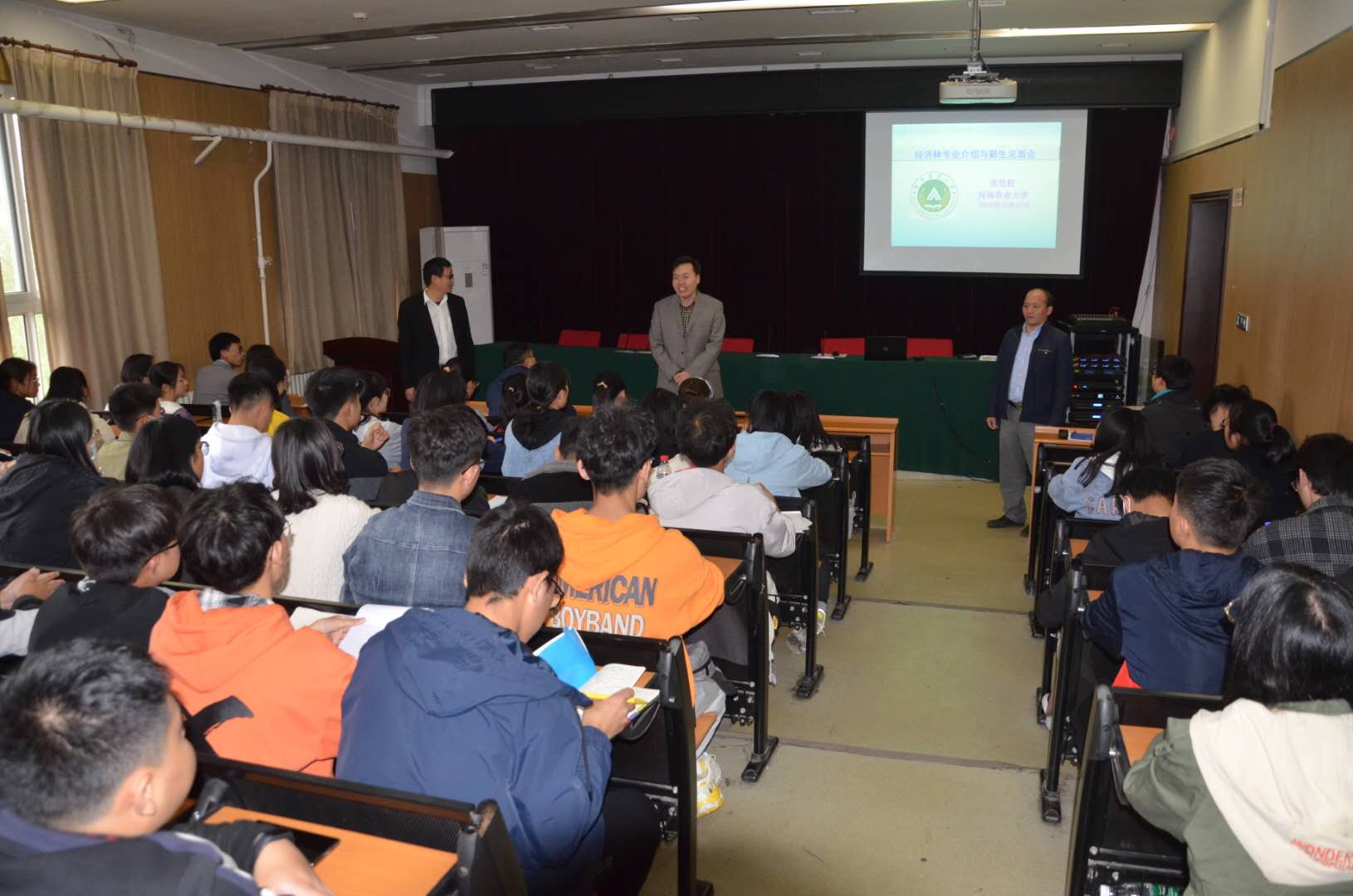 为加深新生对专业的了解,提升专业认同感,10月27日,独播库 于二号楼四楼报告厅召开经济林专业介绍会。院党委书记化青报、副院长彭万喜参加介绍会。介绍会由经济林专业负责人张党权主持。
