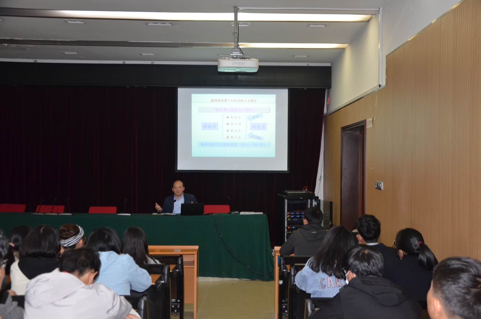 张党权分别从经济林专业的发展历程、产业链对新型人才需求、专业课程体系、未来就业创业优势等方面对经济林专业进行系统化的讲述,重点介绍了在就业方面的发展前景。他指出经济林是有底蕴的,发展前景好,未来毕业大有可为,学生应合理规划时间,把握学习机遇,制定切实可行的大学计划,为以后在专业领域大展身手奠定坚实的基础。
