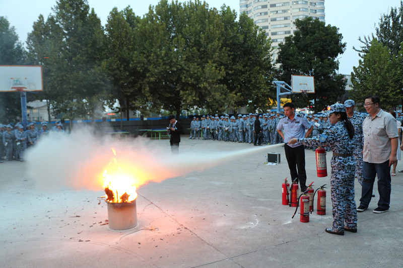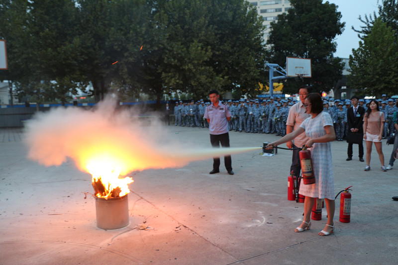 来自河南省安居防火宣传中心的特级教员韩鹏,结合自己从事消防培训工作多年的经验,用生动幽默的语言,深入浅出的讲述了引发火灾的消防安全隐患,以及遭遇火情紧急情况时的处置方法。韩教官强调大学人员密集,宿舍、食堂、实验室、教室等公共场所是火灾易发点,人人都应养成人走电断的习惯。因此加强大学消防管理,提高学生及教师的消防意识和消防素质显得尤为重要。随后师生代表随同韩教官前往东篮球场进行灭火演习,他向大家讲解了灭火器的种类和用法,并现场教学,同学们踊跃参与,在教官的指导下进行练习。
