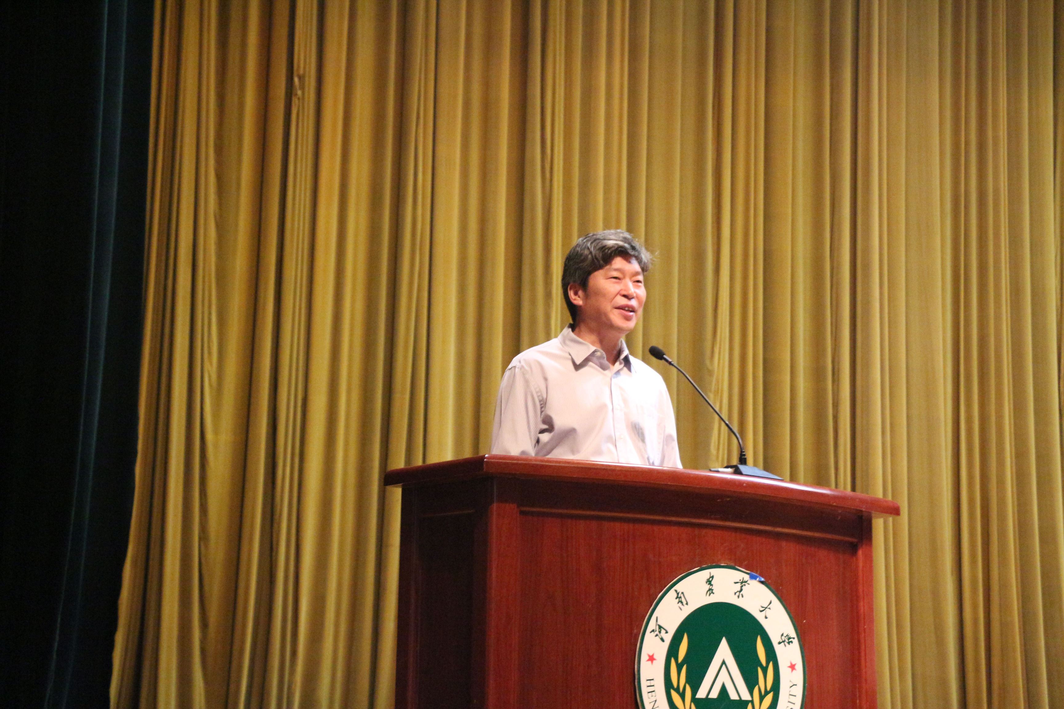 杨喜田首先代表学院全体教职工生对全体2016级新生的到来表示热烈的欢迎,随后对学院的发展历程、学科建设、专业设置以及所取得的成就等方面做了详细的介绍。他表示大学是一个人确立远大理想和目标的重要时期,并结合多年的工作经验向新生们提出了三点希望:一是希望大家要与人为善,培养以和为贵的精神和坚韧不拔的意志,保持艰苦朴素的本色;二是希望大家能强健体魄,积极投身丰富多彩的校园文化活动中,保持身心的健康发展;三是希望大家能砥砺品行,刻苦学习,深入实践,不断学习增强自身的综合素质和能力。最后,杨院长衷心的祝愿全体新生在学习中学会思考,在挫折中经历成长,在挑战中赢得未来。