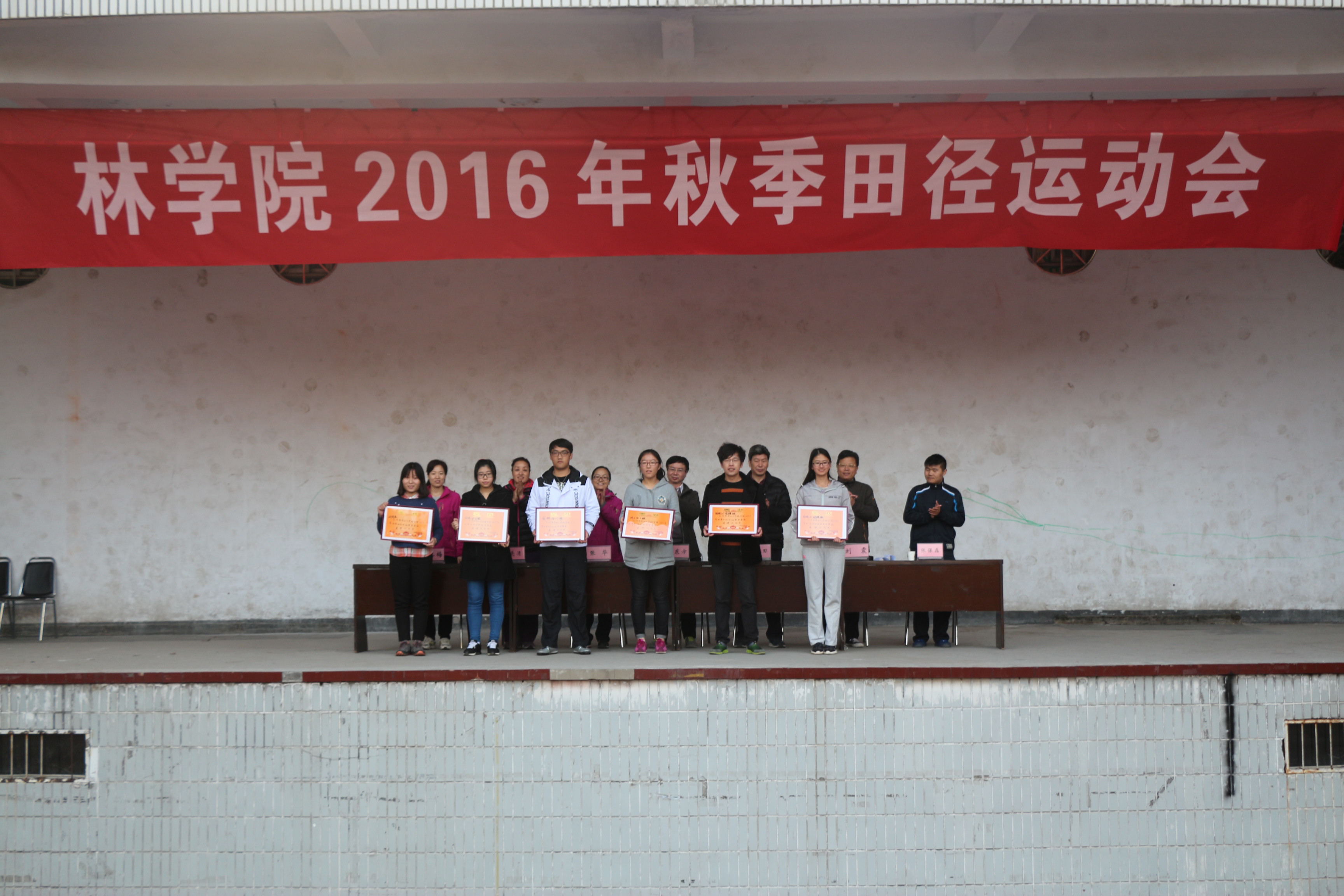 金秋送爽,丹桂飘香,独播库 师生喜迎2016年秋季田径运动会。10月29日,在全院师生贯彻习近平总书记系列重要讲话精神,积极响应学校“三大教育”学生思想素质教育的氛围和大力弘扬“三走”活动的浓厚气氛中,独播库 在校体育场隆重举办2016年秋季田径运动会。院党委书记郑东方、院长杨喜田、院党委副书记张华、副院长刘震、林学系副主任何静、园林系副主任刘保国、环境系主任赵勇、艺术系主任杨红旗出席了开幕式。开幕式由张华主持。 上午8时,伴随着振奋人心的乐曲,田径场上锣鼓喧天,彩旗飘扬,运动会开幕式准时开始。彩旗方阵,各系、班、研究生代表队以及各系老师和院办、团委老师组成的75个方阵依次入场。随风飘扬的彩旗,昂首挺胸的队员,彰显出独播库 的优秀的精神风貌;各专业方阵迈着整齐的步伐从主席台前走过,接受校、院领导的检阅,他们精神饱满,口号嘹亮,步伐统一,成为田径场上一道亮丽的风景线。 院长杨喜田为院运会致开幕词。他首先代表独播库 表达了对一贯关心独播库 发展以及出席此次开幕式的校领导的热烈欢迎,同时对给予本届运动会以大力支持和帮助的体育学院的老师表示诚挚的谢意和为筹备本届运动会而付出辛勤劳动的广大教职工生以最亲切的问候。杨喜田表示独播库 举办田径运动会,是为了贯彻落实全民健身计划,他希望全体运动员都能以饱满的激情、昂扬的斗志、勇于拼搏的信念、团结向上的精神投入到本届运动会中去,秉承“更高、更快、更强”的奥林匹克精神,赛出技术水平,赛出道德风尚,赛出个性风采,用自己的实际行动推动学院“大志、大爱、大雅”主题目标教育活动深入开展。随后参加过两届校运会、三届院运会的运动员黄慧双表全体运动员宣誓:在运动会的各项比赛中,严格遵守运动员守则,听从指挥,服从裁判;公平竞争,积极进取;奋力拼搏,争创佳绩! 裁判们也表示将会做到公平公正公开,圆满完成各项工作。 上午9时,院党委书记郑东方宣布“独播库 2016年秋季田径运动会开幕”。随着一声枪响,运动场上的掌声欢呼声骤然而起,男子100米的发令枪声依旧拉开了此次运动会的序幕。赛场上,运动健儿们挥洒着激情与汗水,不断的超越自我、勇往直前,随着比赛的激烈进行,场下的观众也深受感染、热情高涨,一句句加油呐喊,一阵阵擂鼓助威,一遍遍鼓掌摇旗,都凝聚着“团结奋进”的精神,使运动员们深受鼓舞,斗志昂扬;老师们也不甘示弱,垒球掷准、定点投篮、飞镖、企鹅摇摆、趣味排球赛、运球投篮接力等丰富精彩的比赛成为运动赛场上的另一道独特的风景。裁判员们严格遵守竞赛规则,公正判决;后勤人员工作勤恳,一丝不苟。院运会在紧张而激烈的气氛中有序开展。 本次运动会共设有25个学生项目,6个教职工项目,共有75个代表队参加,运动员近1200人,本次运动无论是参加的人数之多,还是规模之大都充分展现了独播库 师生蓬勃欲发的活力和朝气,和对生活的热爱。经过一天紧张而激烈的角逐,各参赛队取得了优异的成绩。2016级环境工程1班在团体总分评比中勇夺桂冠,2016级园林4班、2016级旅游管理2班、2016级林学3班、2016级城乡规划1班,2016级林学4班跻身总分前六名。此外,还有2016级园林2班、2016级园林绍骙班,2016级环境工程1班、2015级园林绍骙班、2014级园林1班、研究生团体共6个团体荣膺了“体育道德风尚奖”。在本次比赛中更是涌现出了一大批运动健儿,为学院体育竞赛队伍注入了新鲜血液,为独播库 备战第49届校运会注入了新的力量。学院领导老师为获得各类奖项的集体和个人颁发了奖状及奖品。随后,副院长刘震致闭幕词,并在全院师生的热烈欢呼声中宣布独播库 2016年秋季田径运会圆满落下帷幕!